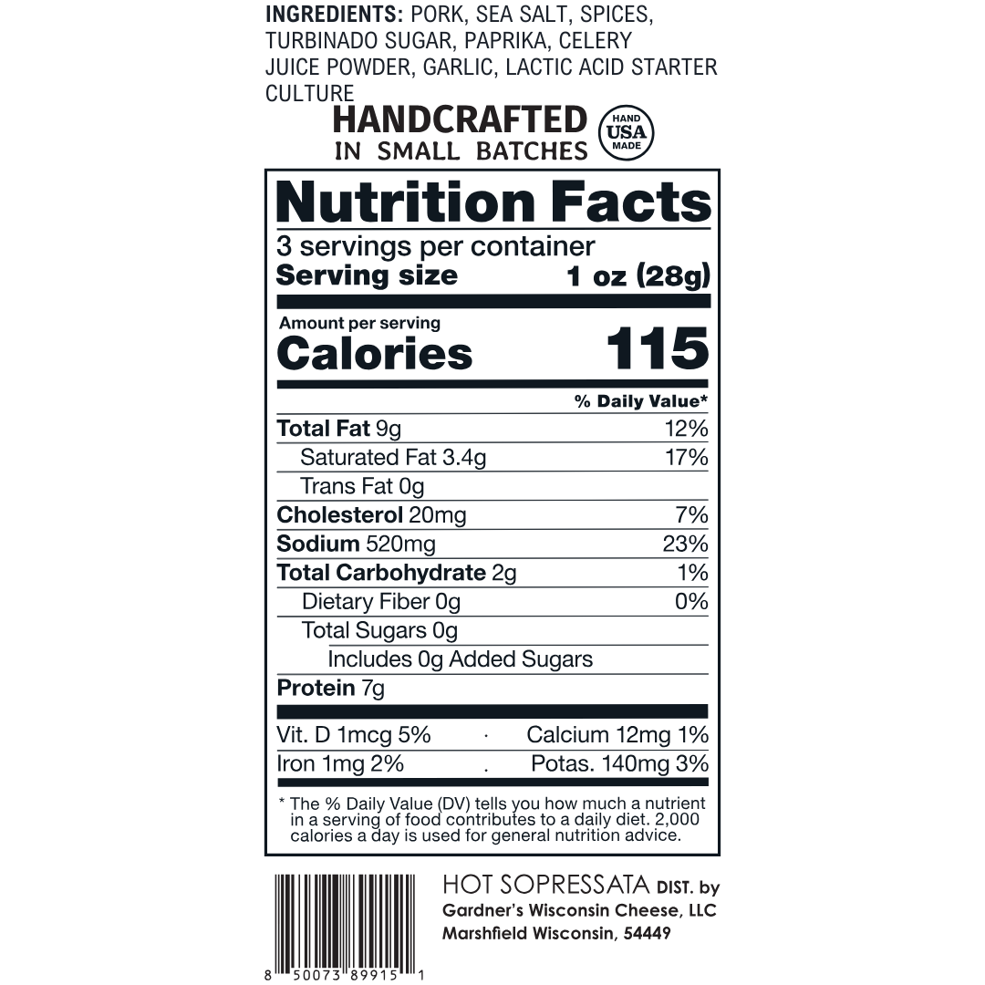 Say it with us now: so-preh-SAH-tah. Tricky name, tasty reward. Our Hot Sopressata Sliced Salami turns up the heat with a savory kick of cayenne in every bite. Smooth, savory salami meets a kick of cayenne, bringing just the right amount of spice to every bite.