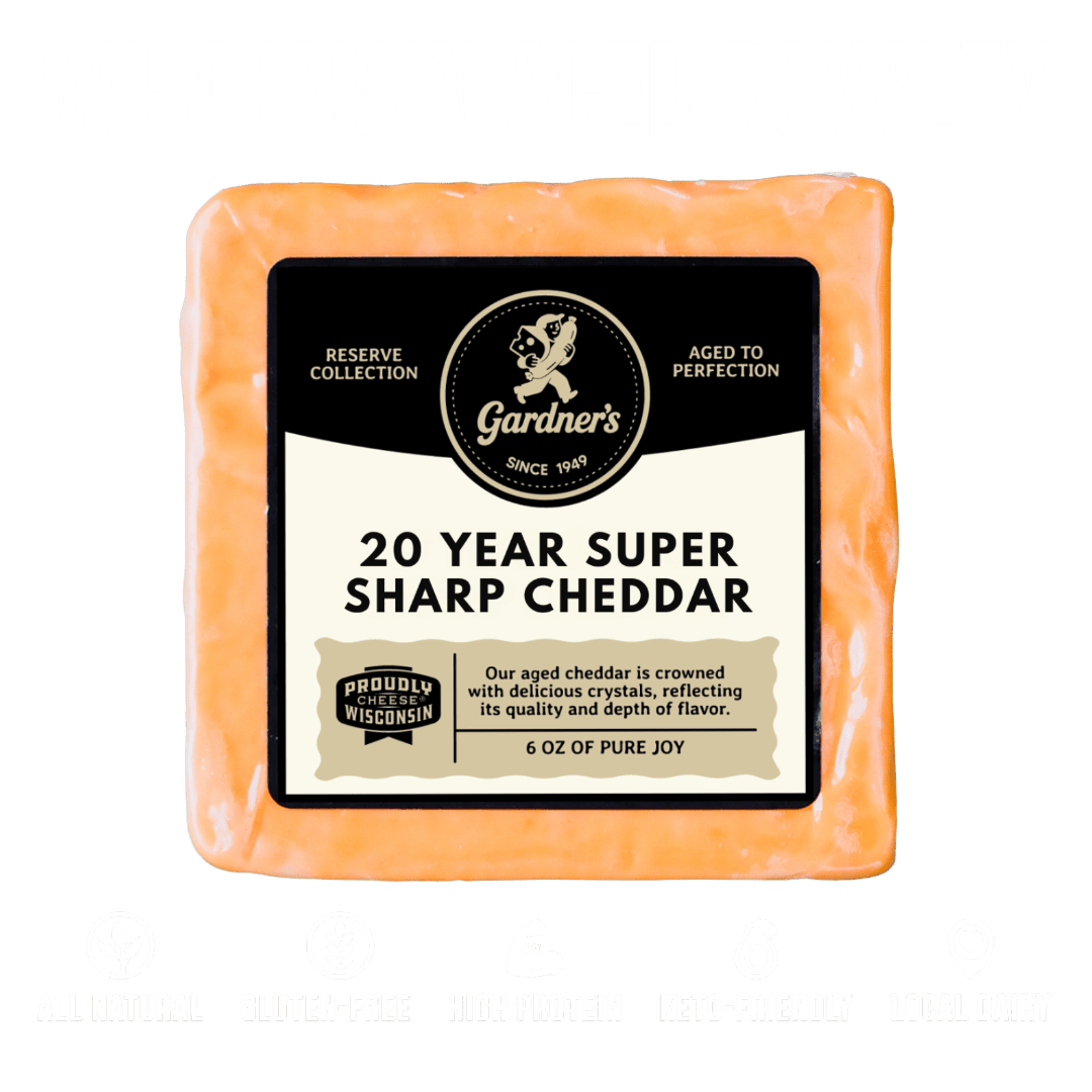Whether you are building the ultimate Wisconsin cheese board, treating yourself to once in a lifetime cheddar, or sending a gourmet cheese gift, our 20-Year-Old Super-Sharp Cheddar is the one they will still be talking about long after the last crumb disappears.
