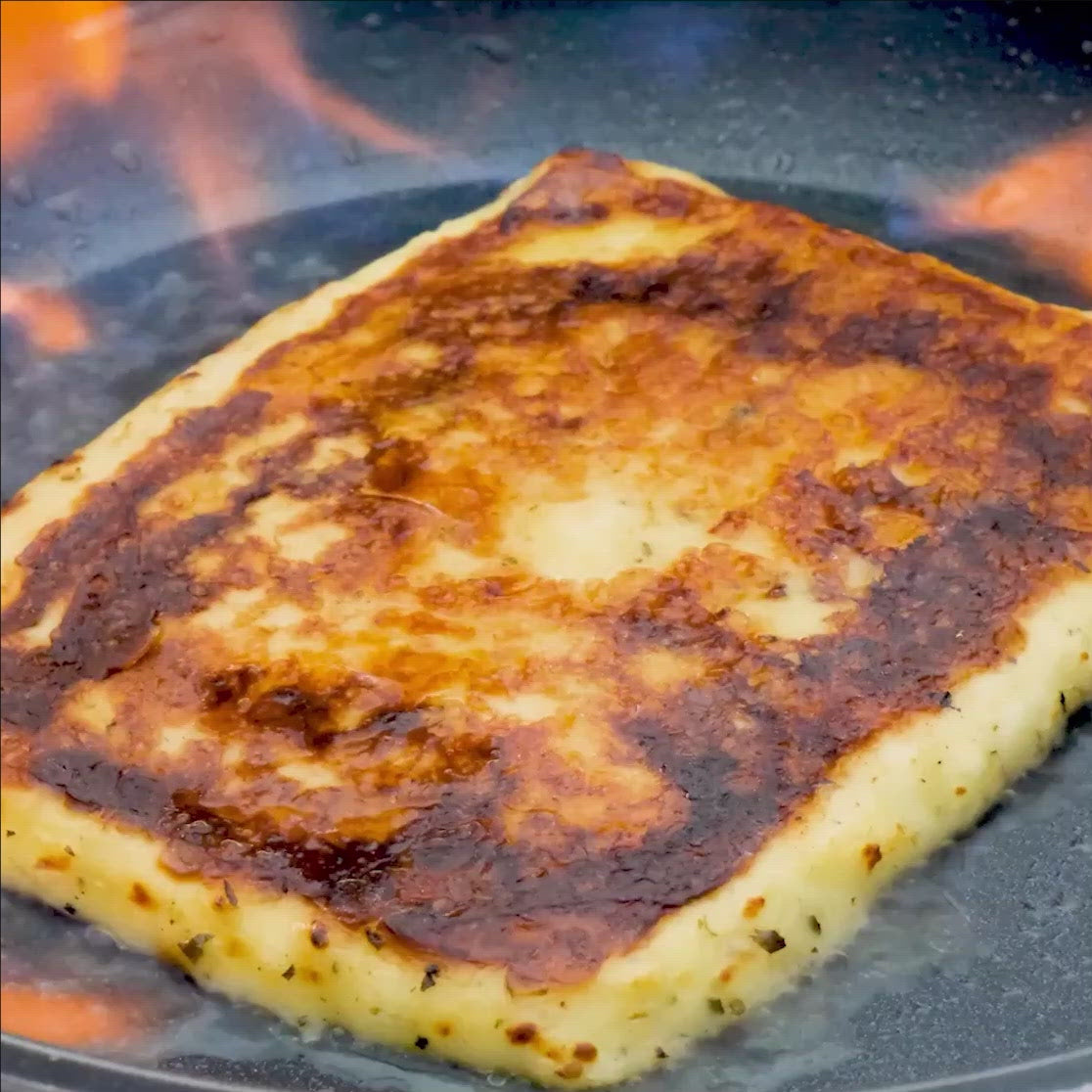 - Skillet: Preheat non-stick pan to med-high on stovetop. Cut cheese to desired size pieces. Place cheese pieces into DRY preheated pan. Brown to your liking, about 5 minutes per side.